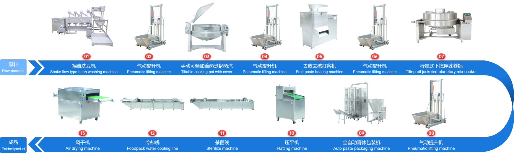 企業經多年研制開發的下攪拌可傾式蓮蓉鍋、下攪拌夾層鏟鍋、可傾式蒸煮鍋、去皮去核打漿機、立式熱抽真空包裝機、餡料風干壓平機、餡料冷卻線、江米條成型機、循環過濾油炸鍋、下出料脫油機等設備在國內同類設備中達到綠色環保標準,已報國家專利局和有關部門申請認證,成為企業的品牌產品,深受廣大客戶的支持和信賴。